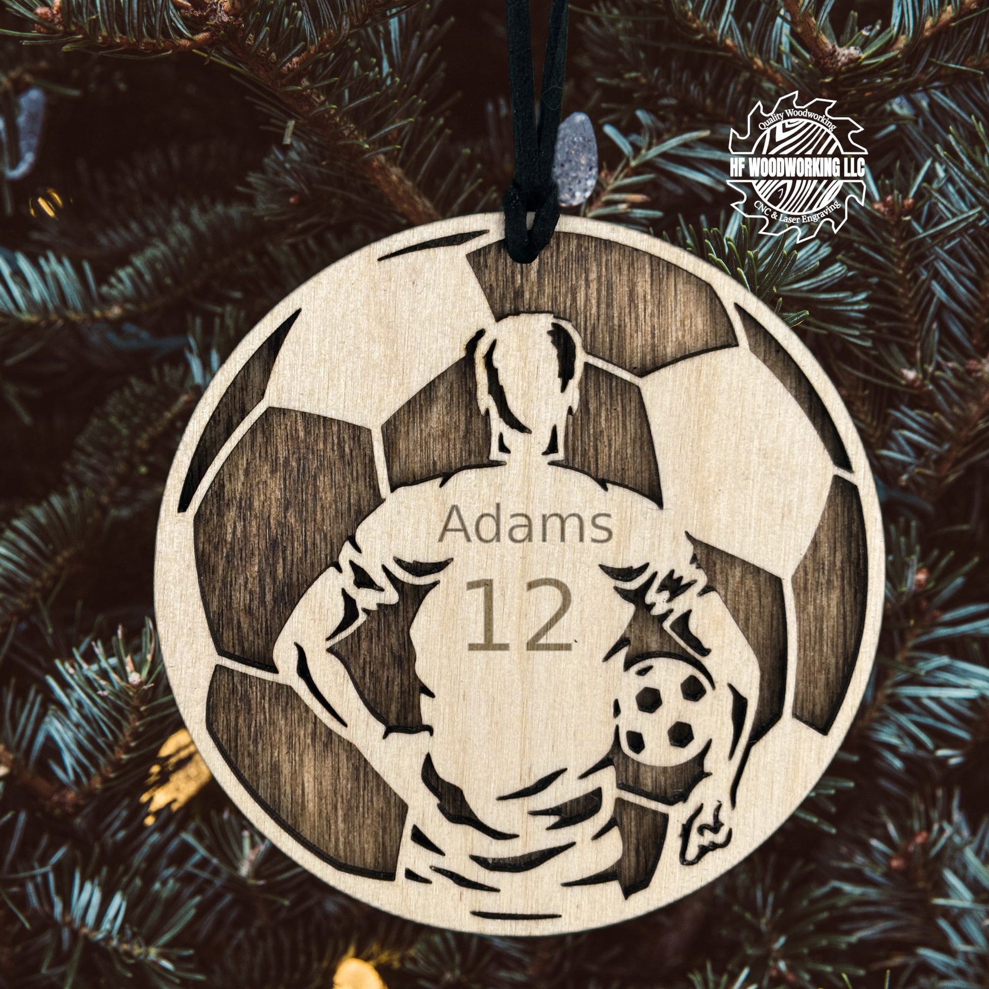 Ornament is made from wood, Handmade gift made in Minnesota. Large ornament has black or brown leather cord for hanging from tree.